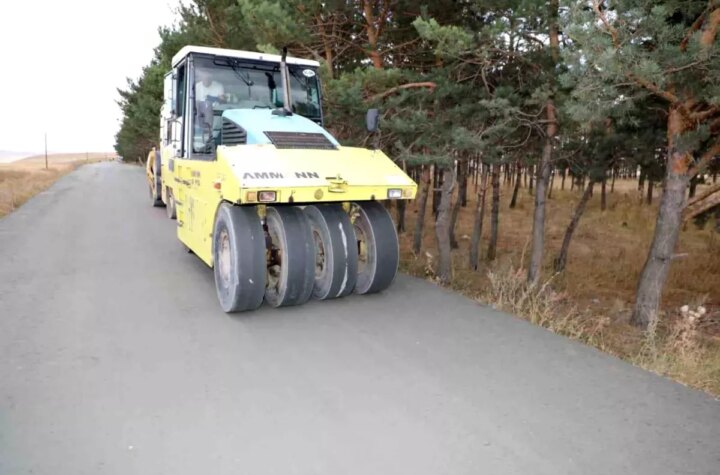 Kars'ta köy yollarında ulaşımın inançlı ve konforlu hale gelmesi için başlatılan beton asfalt çalışmaları...